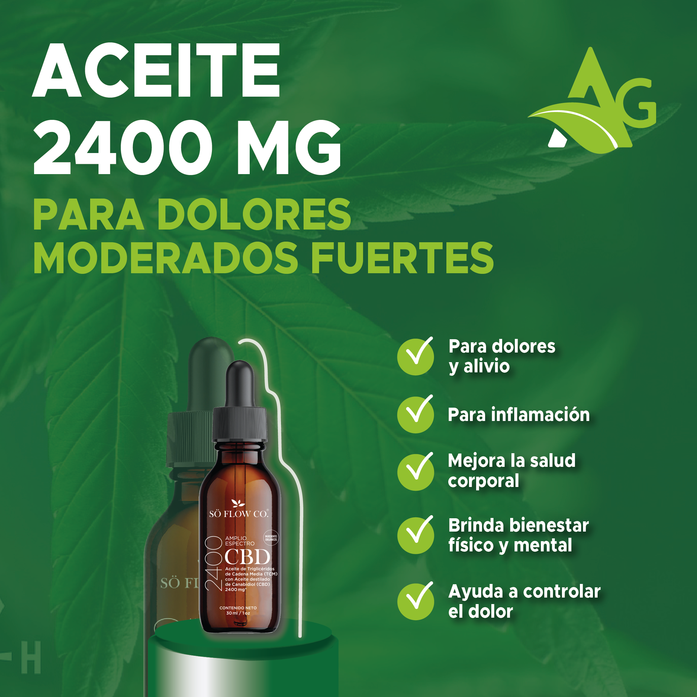 2400mg: Casos moderados/avanzados: aporta 80mg de CBD por toma.